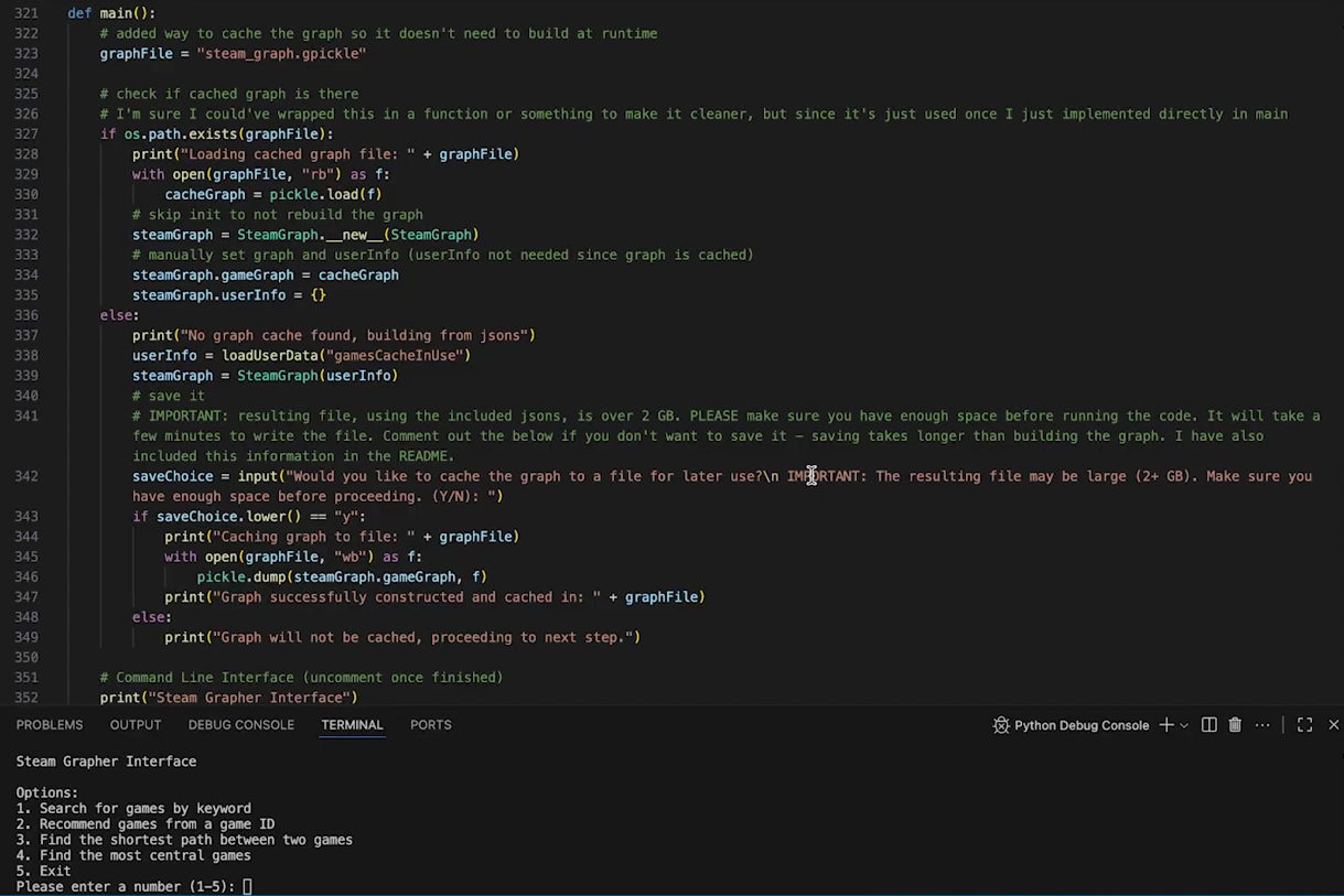 CLI tool built in Python using the Steam API to generate personalized game recommendations based on user library data, applying data structures and algorithmic logic.