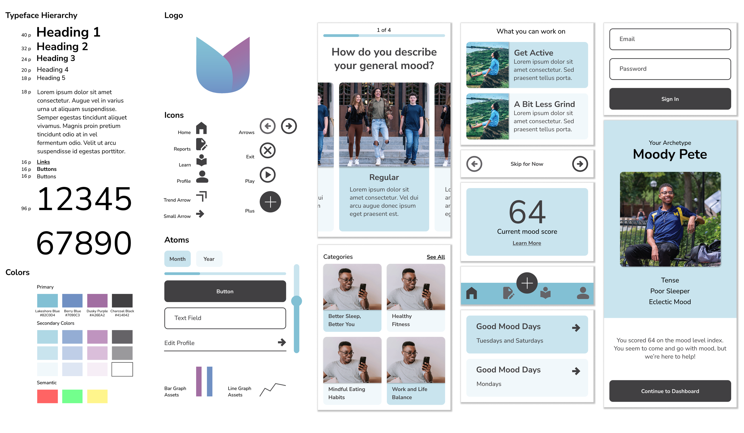 Created a lightweight, accessible brand identity system for a hypothetical mental health app, emphasizing scalability and readiness for real-world product integration.